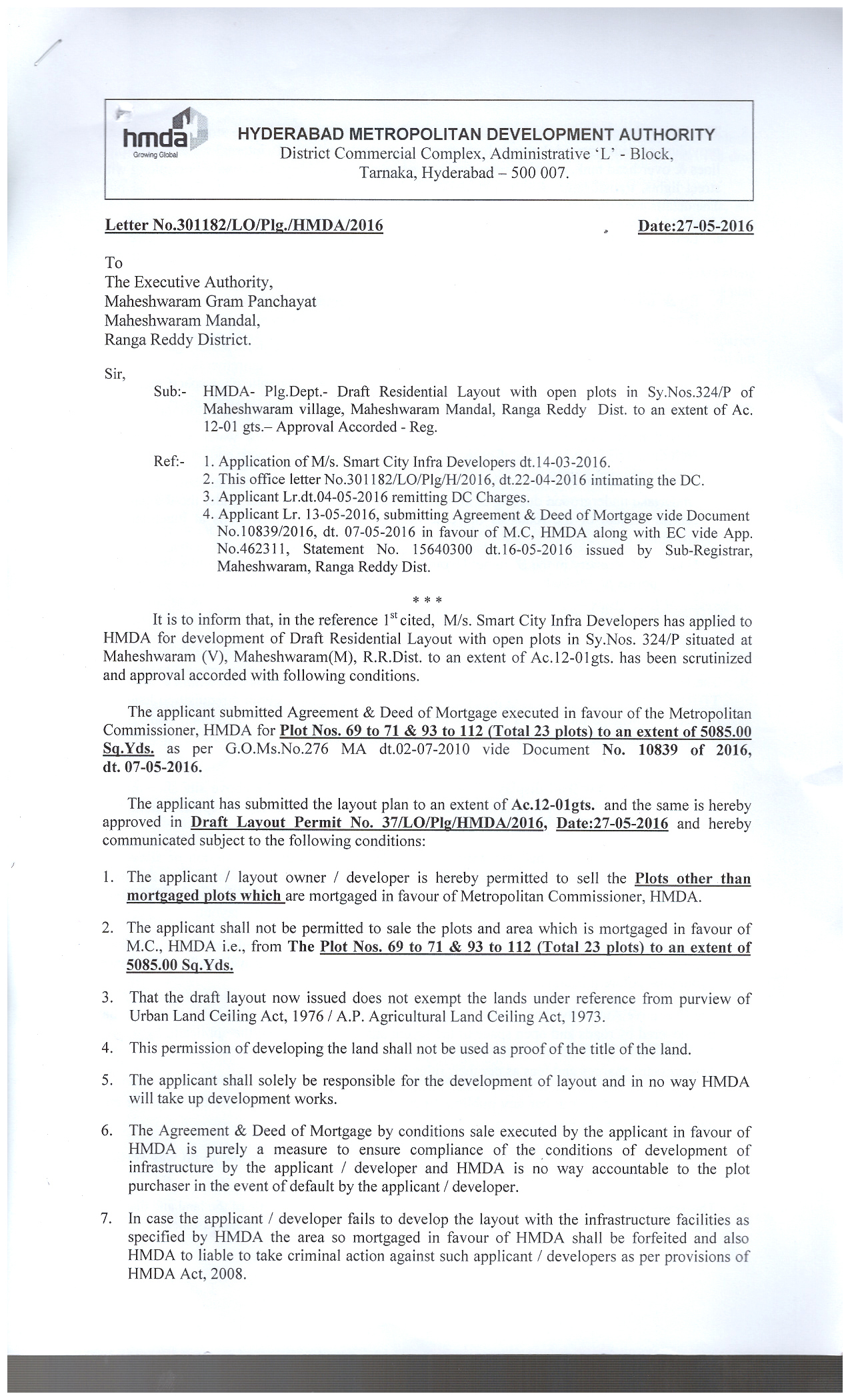 Everyone wishes to live in a spacious home of his own. A tranquil landscape to enjoy fresh breezes, and gently swaying trees. Experience the birdsong and the bees hovering over fragrant flowers. Welcome to Smart City, an HMDA Approved layout of fully developed plots with all amenities. It is centrally located in Maheswaram, close to Electronic City, mega housing projects and upcoming giant parks like Hardware Park, E City, Aerospace Park and Pharma City. Maheshwaram is rapidly developing into a hub for fast track growth in various sectors.